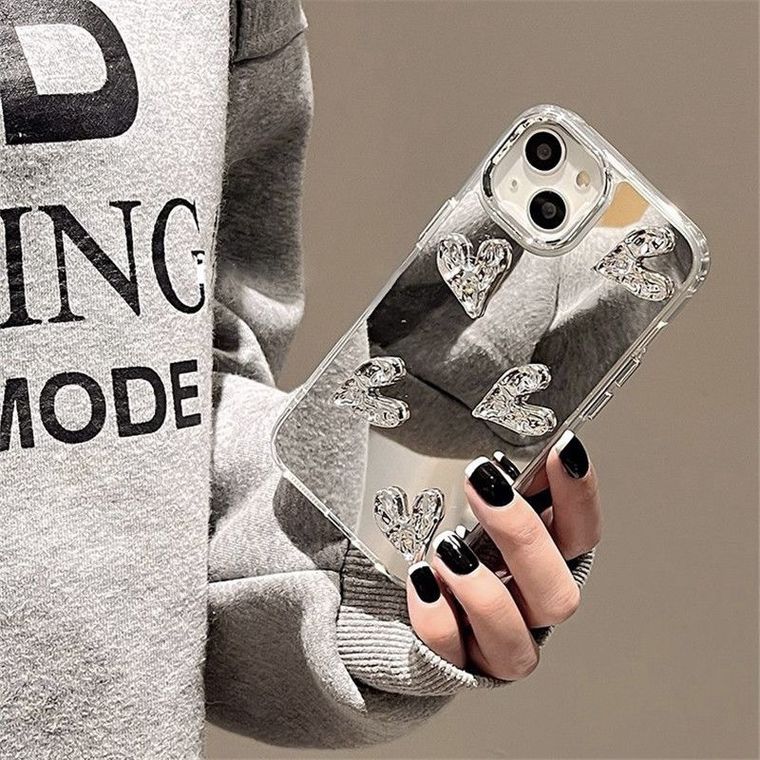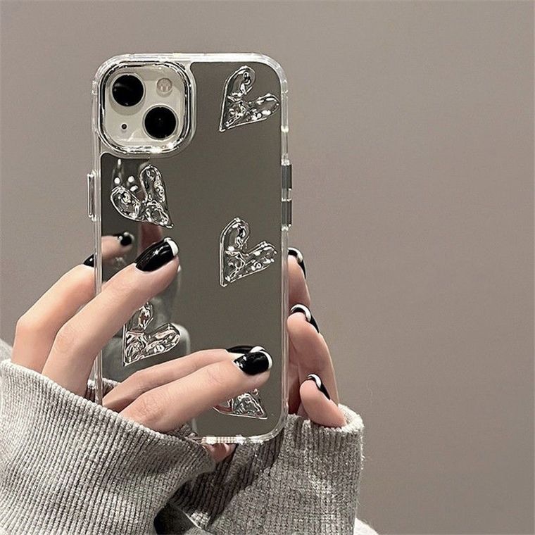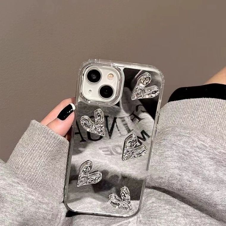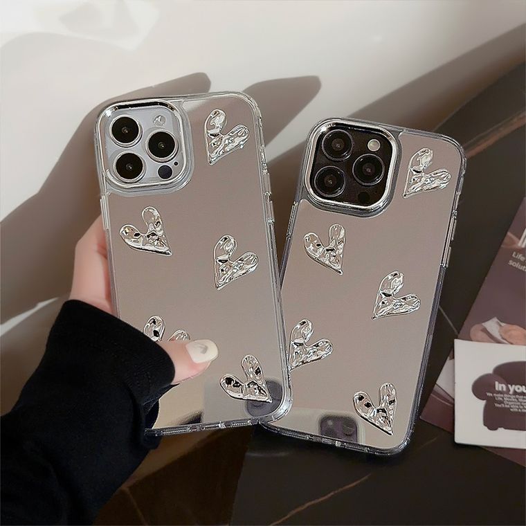 Capa de Luxo Espelhada com Relevo de Coração – exclusividade e sofisticação para seu iPhone!